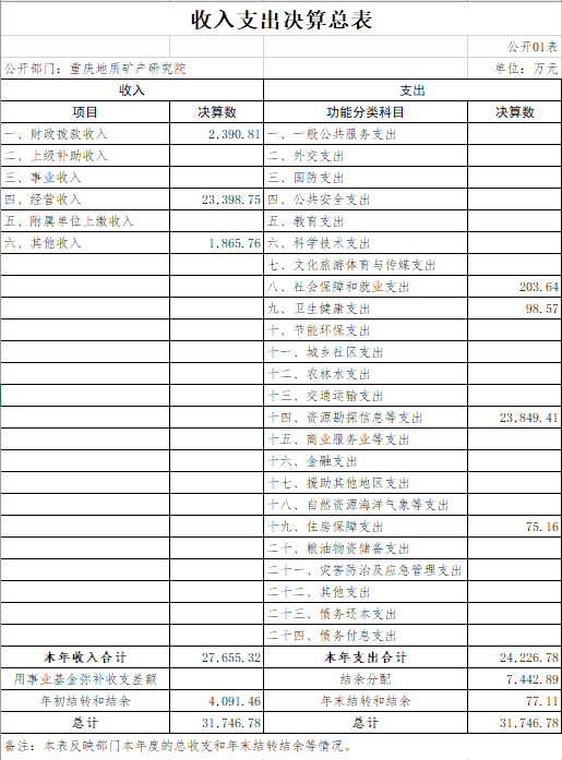 主管部门 | 重庆地质矿产研究院 | 预算单位 | 重庆地质矿产研究院 | |||